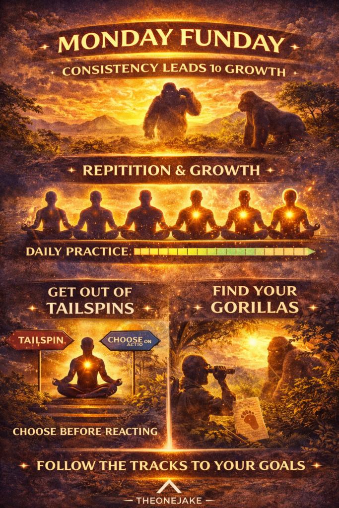 Monday funday. Back to the grind – had a best sleep I’ve had all week at 93% quality. Today the DC was about repetition and the benefits of it. I subscribe to the lifestyle of daily consistency, no matter how small, brings on glorious results. This practice ties in to that. It talks about how repetition of a good thing no matter how mondain increases your growth. This practice also includes the Japanese work Shoshin. A word that is commonly used in practice and has been used in sits #52-2024 July 24 and #115-2025 Apr 23. It’s the word for a “Beginners Mind”. The idea that you approach everything with a beginners mind set. Open to the possibilities and curiosity that a beginner might have. When applying this approach to repetitive tasks you take the mondain out of it and accept it as new each time. It makes the repetition more enjoyable and more impactful. The DT today was about the being in a tail spin and getting out of it. This practice looks at the reactionary actions we all feel as humans and steps away from them in order to reduce the reaction and increase the positive reaction. Although a reactionary action may be the right one, taking the time to see it before doing it lets you have that choice. Looking at it first also gives you the ability to chose and reduces the impact on your stress levels, which is the point of practice. The DJ today was about finding your Gorillas. The meaning of the practice was to identify your objectives and track them like a gorilla in the wild. Taking little clues left behind until you find all the clues and discover what you are looking for. Your goals are important, just like that Gorilla is. However, the tracking part, the clue finding, the process of getting to the Gorilla is really the most important part of finding the Gorilla. The Gorilla will always be there in the jungle. The process of finding it will not unless you chose to do so.